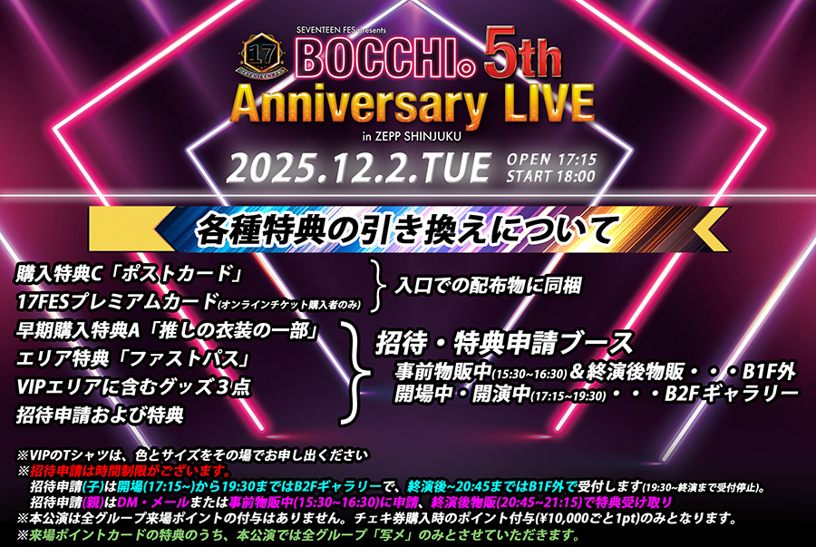 SEVENTEEN FES presents『BOCCHI。 5th Anniversary LIVE in ZEPPSHINJUKU』の開催が決定しました!