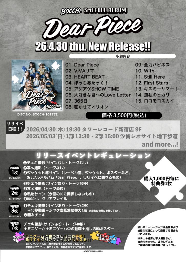 - Dear Pieceリリイベ2日目5/3情報解禁!!