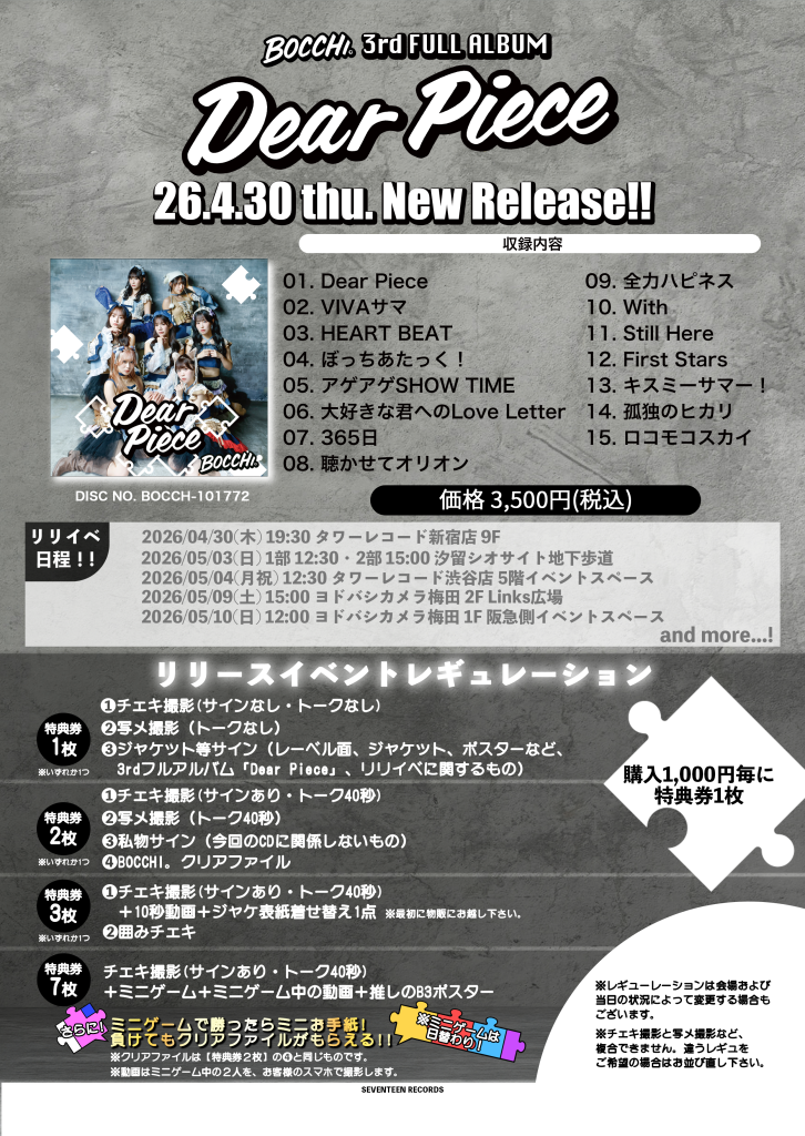 - Dear Piece5/4リリイベ渋谷追加!!