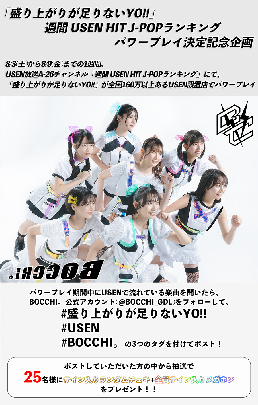 - BOCCHI。初!「盛り上がりが足りないYO!!」がUSENで放送中!