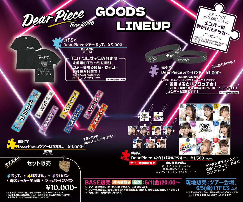 【特典】4/28(火)定期公演で先行販売! DearPieceツアーぼタオル。を買うと、タオルにサインを入れます!